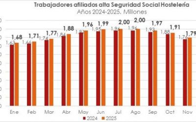El sector de l’hostaleria va comptar el 2025 amb una mitjana propera a 1,87 milions de treballadors afiliats a la Seguretat Social, fet que suposa ...