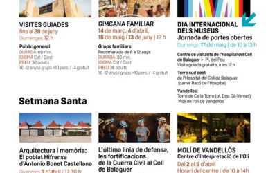 Les regidories de Cultura i Turisme programen diverses propostes a l’Hospital del Coll de Balaguer, el poblat Hifrensa, el Molí de Vandellòs ...
