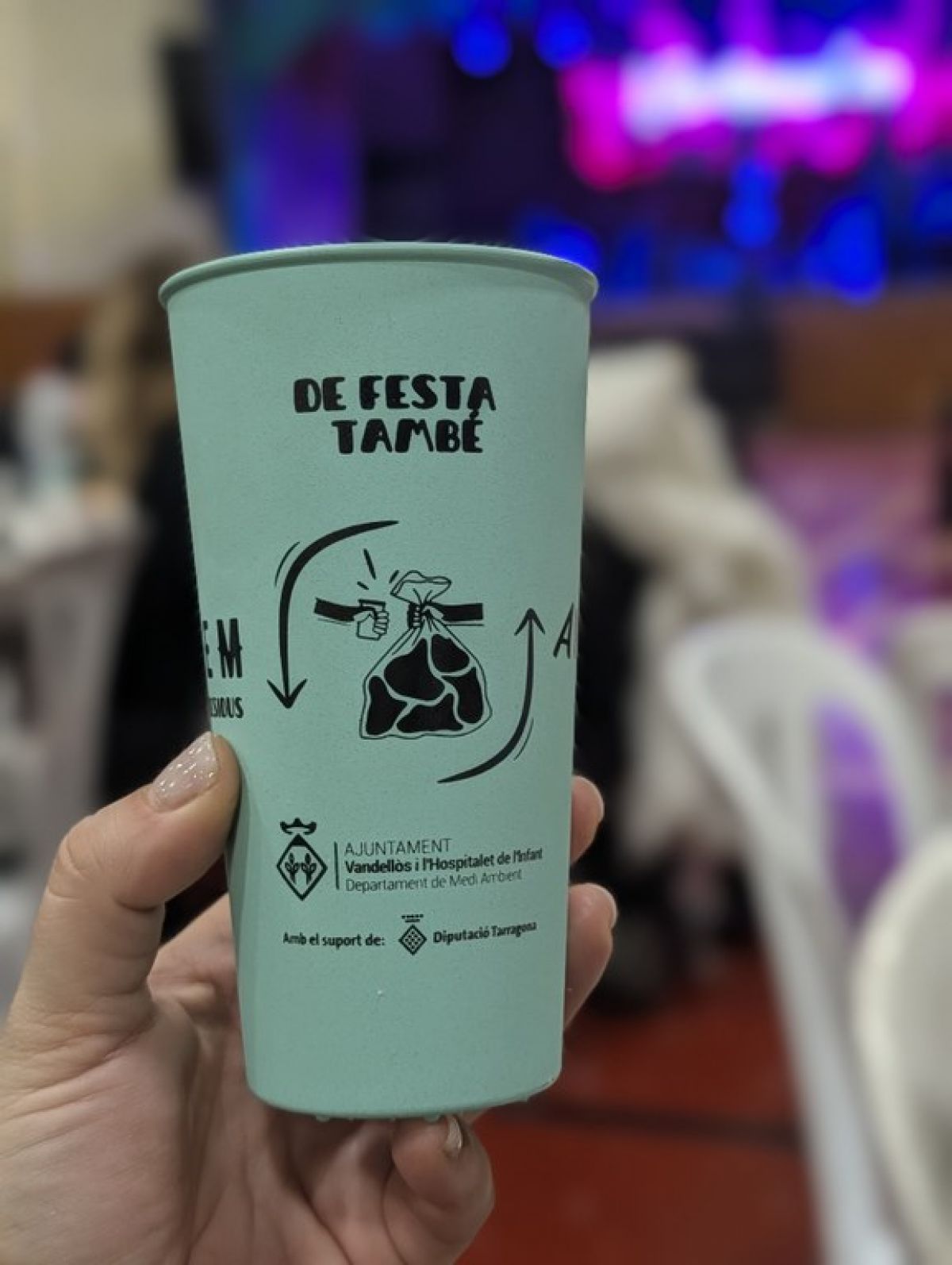 En aquest sentit, es vetllarà perquè els cartells dels actes en què hi hagi àpats o servei de beguda recordin als assistents que portin el got reutilitzable de casa, amb la voluntat de reduir la generació de residus i avançar cap a un model de festes més sostenible.