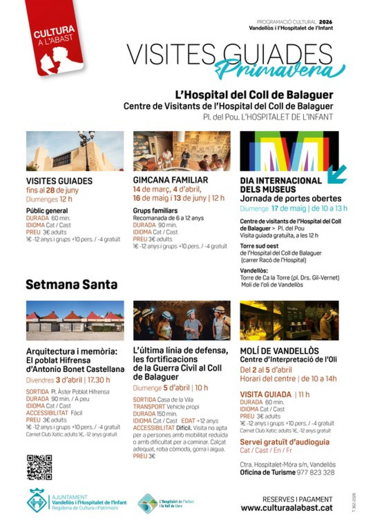 Les regidories de Cultura i Turisme programen diverses propostes a l’Hospital del Coll de Balaguer, el poblat Hifrensa, el Molí de Vandellòs i les fortificacions de la Guerra Civil