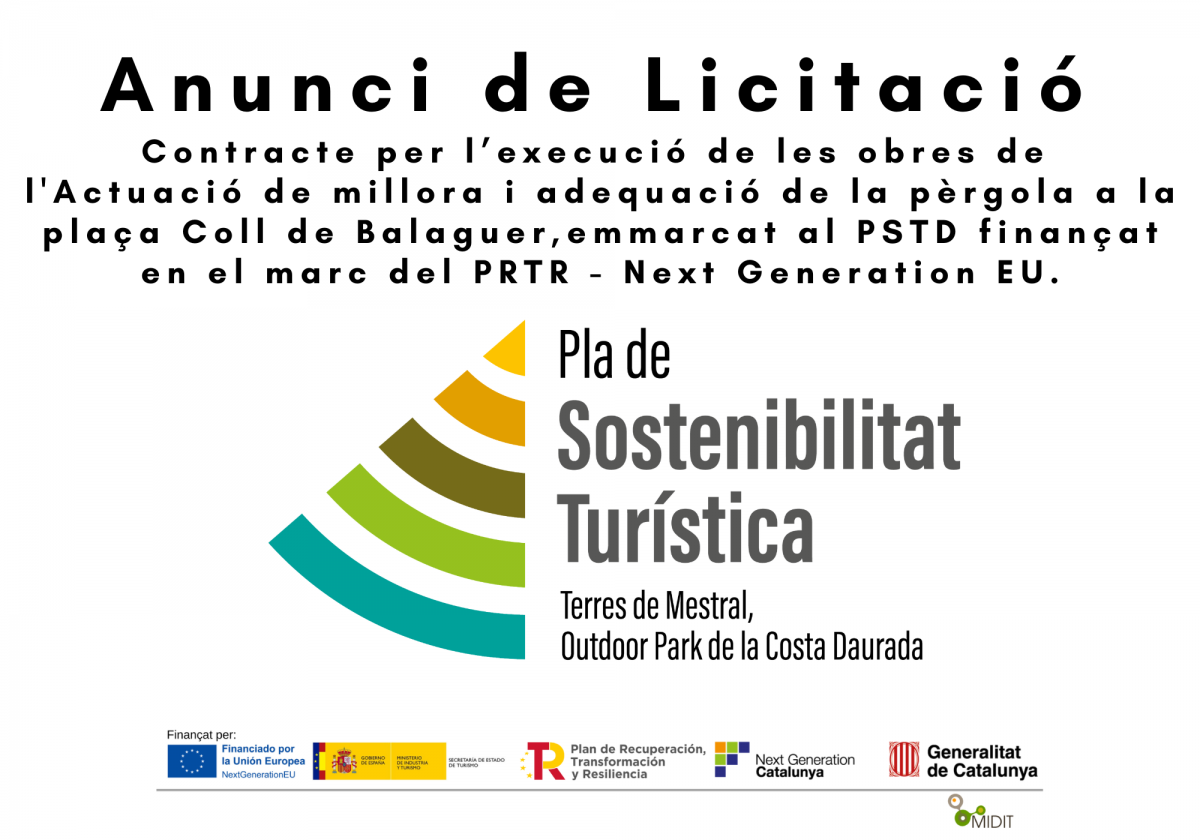 La Mancomunitat d'Iniciatives per al Desenvolupament Integral del Territori (MIDIT) obre el període de licitació de les obres incloses al Projecte bàsic i executiu de l'Actuació de millora i adequació de la pèrgola a la plaça Coll de Balaguer, emmarcat al PSTD finançat en el marc del PRTR - Next Generation EU.